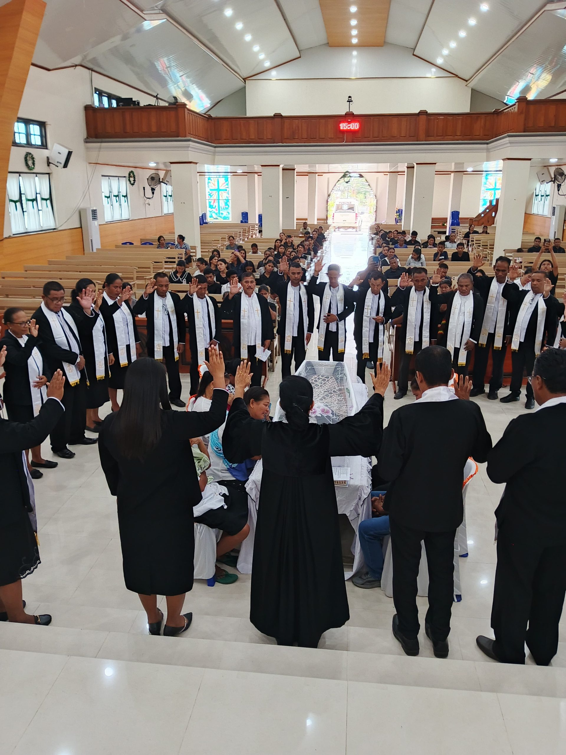 Pelaksanaan pemakaman dijadwalkan berlangsung pada pukul 14.00 WIT. Keluarga, jemaat, serta para pelayan Tuhan hadir untuk memberikan penghormatan terakhir kepada almarhumah.