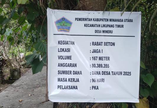 Minahasa Utara, LINTASADATDANBUDAYA.COM — Pembangunan infrastruktur jalan berupa rabat beton yang dilaksanakan di Desa Wineru, Kecamatan Likupang Timur, Kabupaten Minahasa Utara, menjadi perhatian sebagian masyarakat setempat. Proyek tersebut dinilai cukup baik dari sisi kualitas fisik, namun dipertanyakan dari aspek skala prioritas karena lokasinya berada di kawasan pekuburan desa.