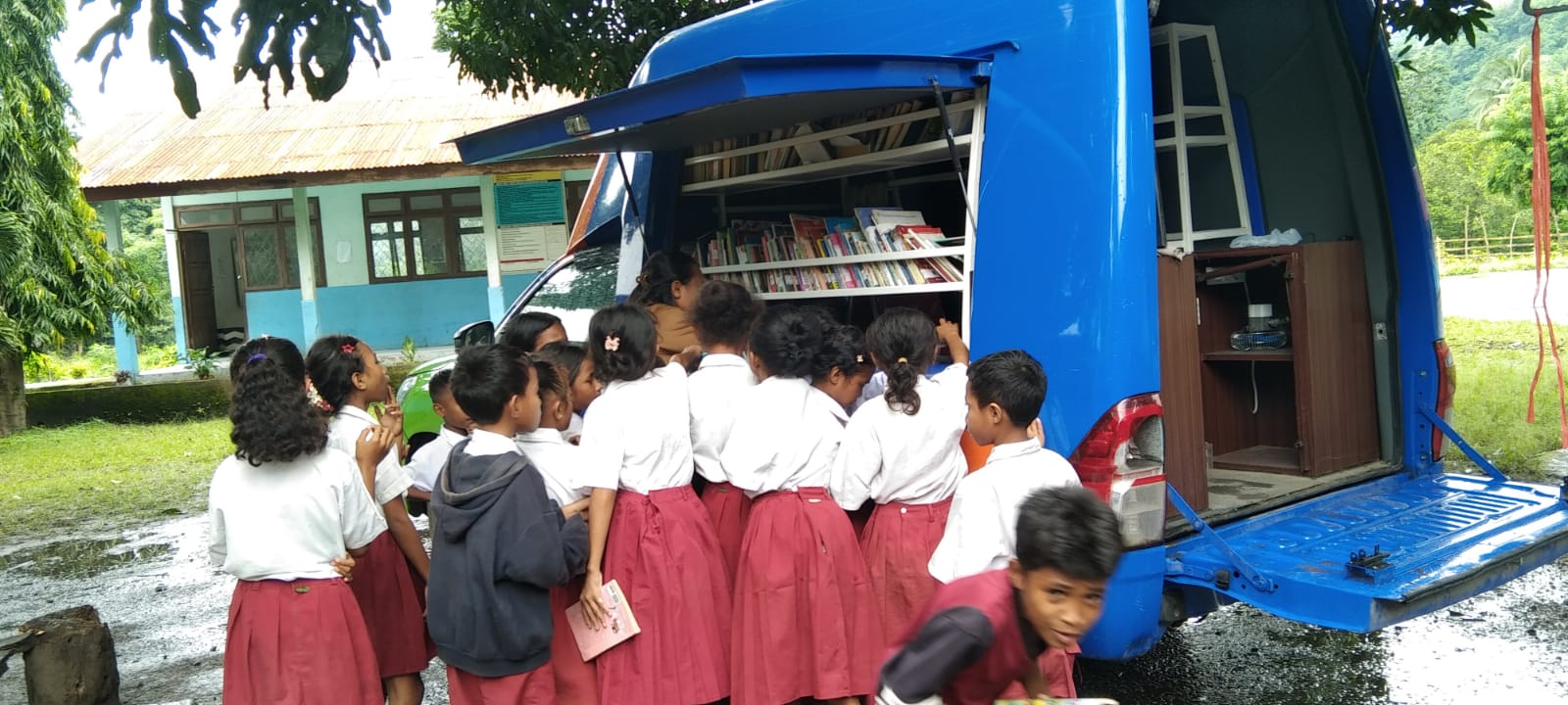 Kunjungan tersebut diisi dengan berbagai kegiatan edukatif, seperti layanan perpustakaan keliling, membaca bersama, pengenalan buku bacaan anak, serta edukasi literasi dasar dan sains yang disesuaikan dengan usia pelajar. Para siswa terlihat antusias mengikuti setiap kegiatan yang dilaksanakan.