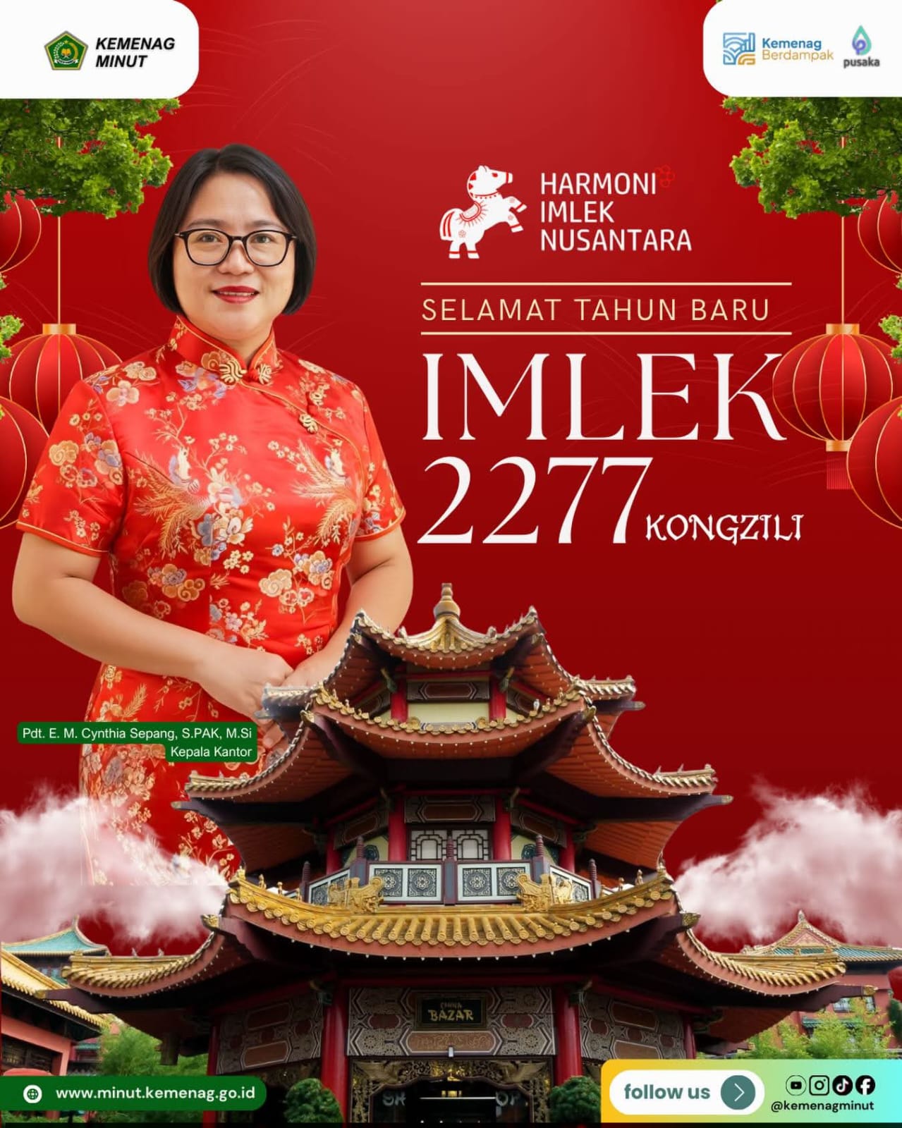 MINAHASA UTARA, Lintasadatdanbudaya.com Kepala Kantor Kementerian Agama di Kabupaten Minahasa Utara, Pdt. E. M. Cynthia Sepang, S.PAK., M.Si bersama seluruh jajaran menyampaikan ucapan Selamat Tahun Baru Imlek 2277 Kongzili kepada seluruh umat yang merayakan.Senin 16/02/2026