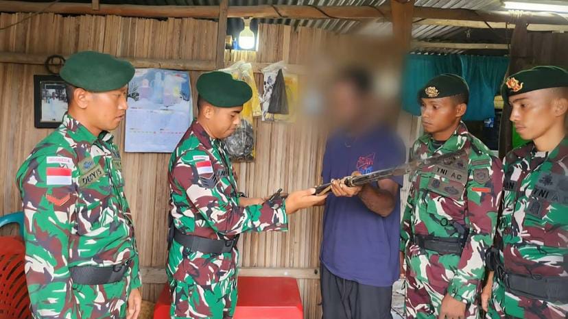 Alas Selatan (Malaka), LintasKabarkan.ID – Satgas Pamtas RI-RDTL Sektor Timur Yonarmed 12 Kostrad melalui Pos Motamasin kembali menunjukkan keberhasilan dalam menjaga stabilitas keamanan wilayah perbatasan. Hal ini ditandai dengan penyerahan secara sukarela 1 (satu) pucuk senjata api jenis Springfield laras panjang oleh seorang warga berinisial AN (44), yang merupakan warga Dusun Motamasin, Desa Alas Selatan, Kecamatan Kobalima Timur, Kabupaten Malaka. Penyerahan senjata tersebut merupakan hasil dari pendekatan persuasif dan komunikasi sosial (komsos) yang dilakukan secara berkelanjutan oleh personel Pos Motamasin. Berawal dari kegiatan komsos dan gotong royong bersama warga, hingga pelayanan kesehatan keliling yang diberikan kepada AN, terjalin hubungan yang erat dan penuh kepercayaan. Dalam interaksi tersebut, terungkap bahwa senjata api tersebut merupakan peninggalan orang tua dari masa konflik Timor Timur, yang selama ini disimpan oleh yang bersangkutan. Melalui pendekatan humanis serta edukasi tentang bahaya kepemilikan senjata api tanpa izin, personel Satgas secara bertahap meyakinkan warga untuk menyerahkan senjata tersebut demi keamanan bersama. Setelah melalui proses musyawarah dengan keluarga, pada Kamis (23/04/2026), AN akhirnya secara sukarela menyerahkan senjata api tersebut kepada personel Pos Motamasin untuk diamankan. Kondisi senjata yang telah berkarat menunjukkan bahwa senjata tersebut telah lama tersimpan dan tidak digunakan.